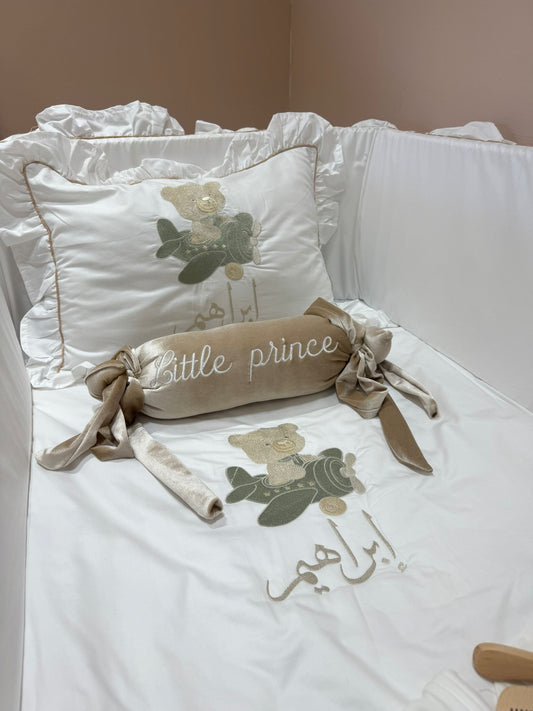 סט מצעים יוקרתי – בעיצוב אישי עם רקמת דובי ומטוס