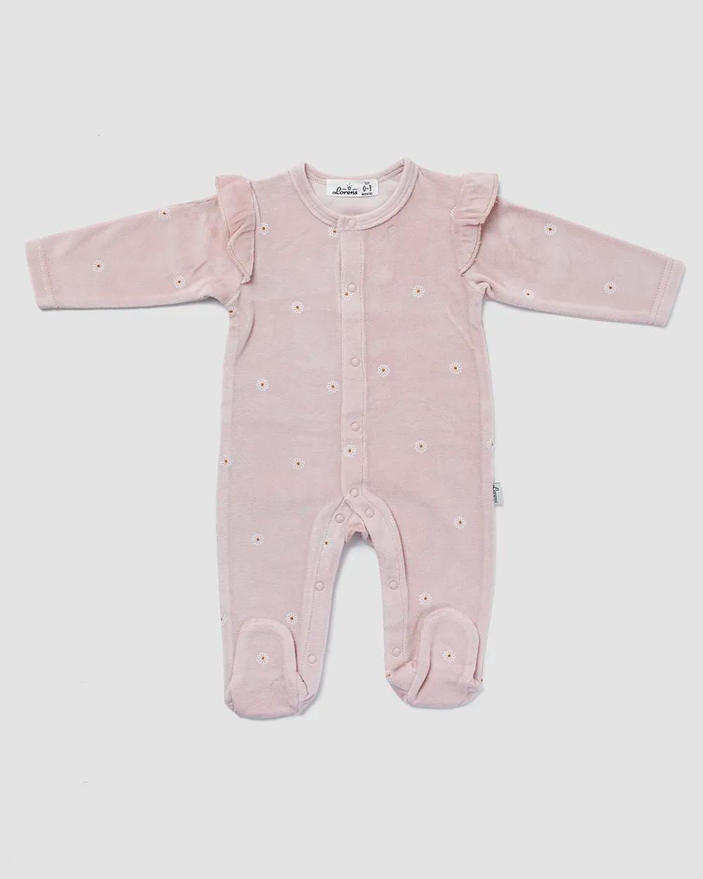 אוברול קטיפה פרחים ורוד עתיק