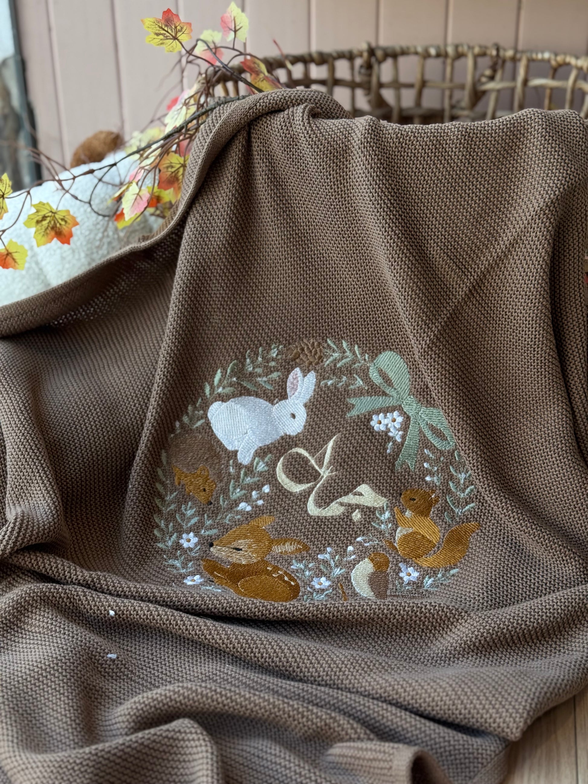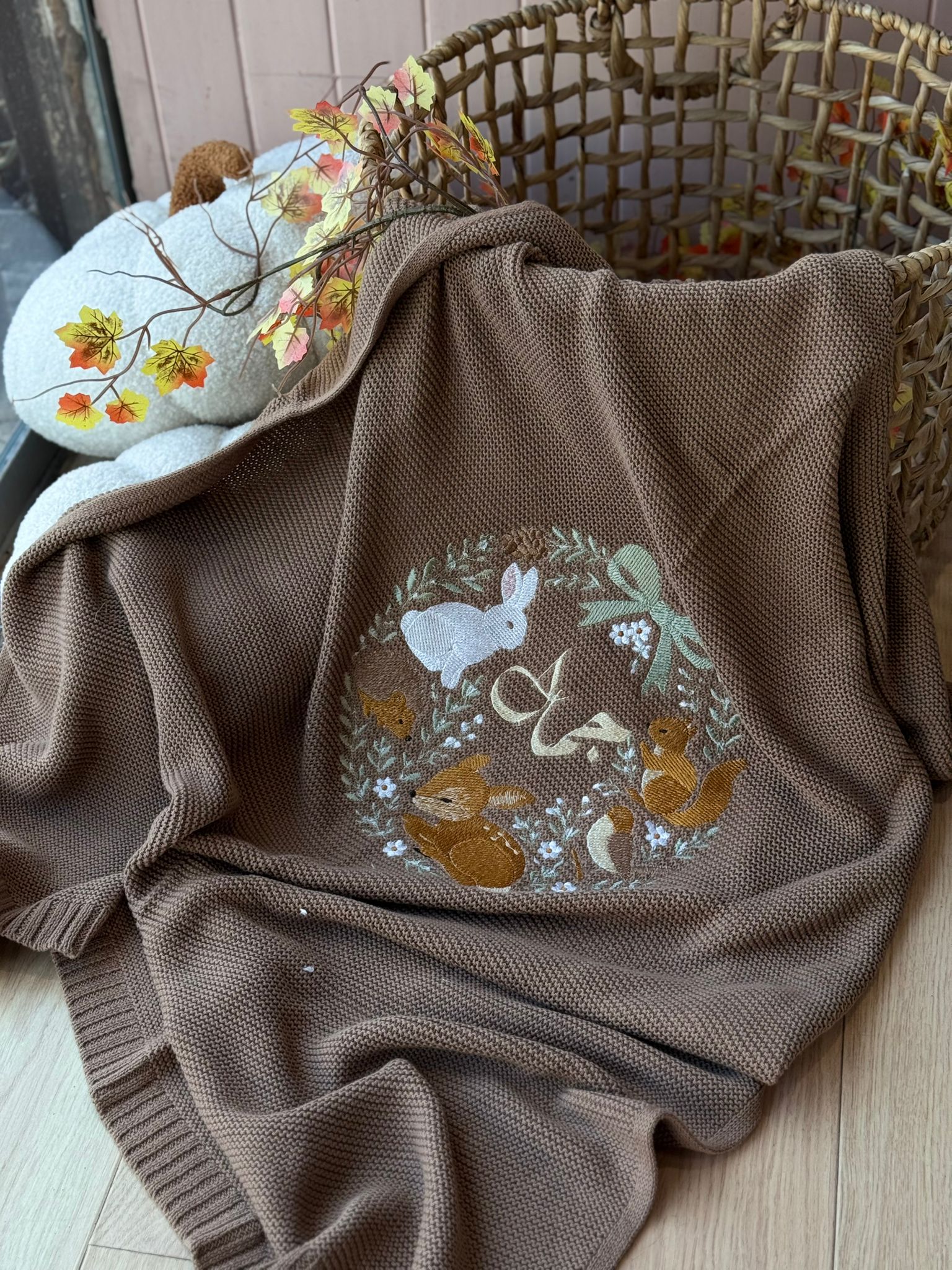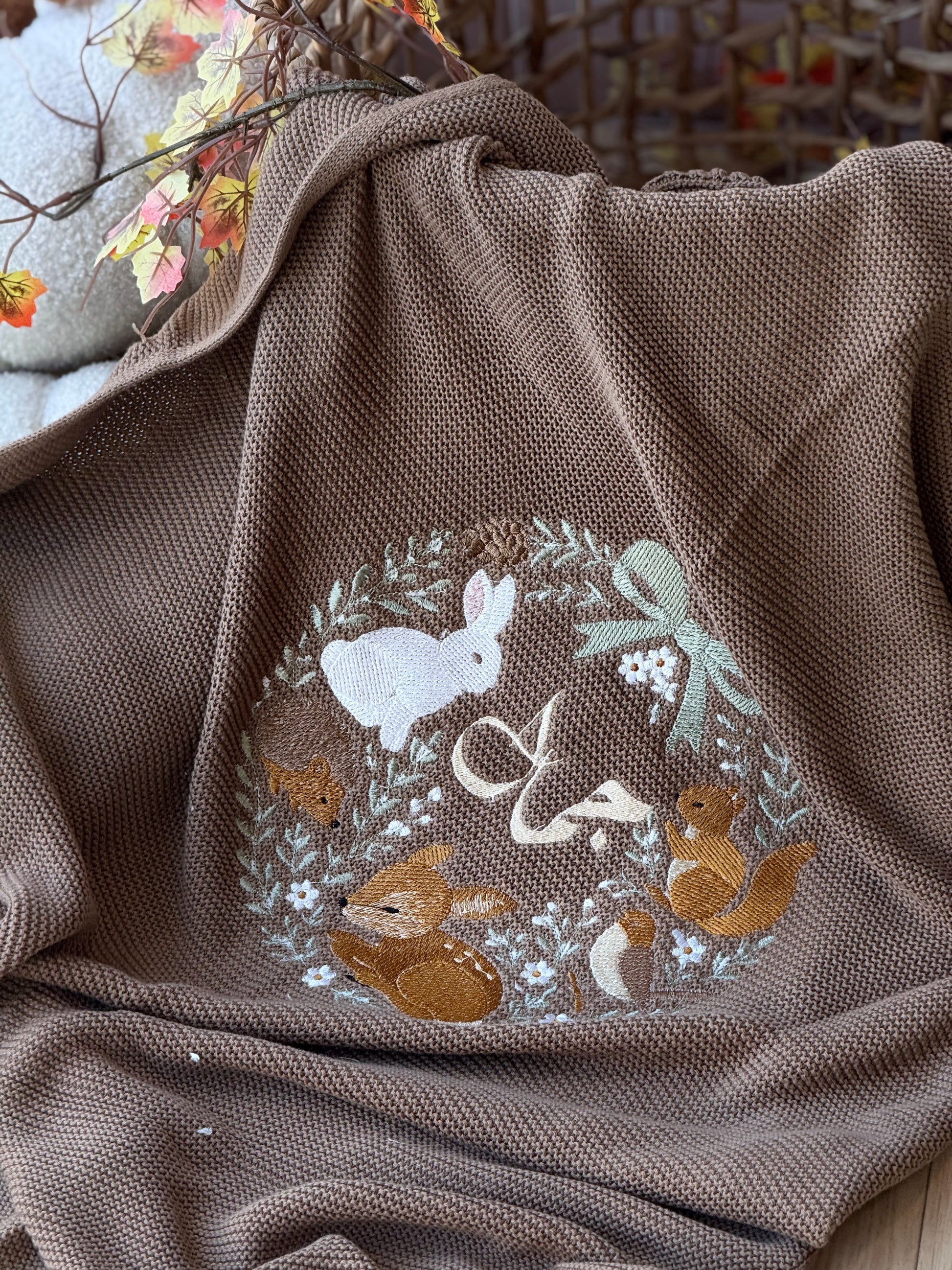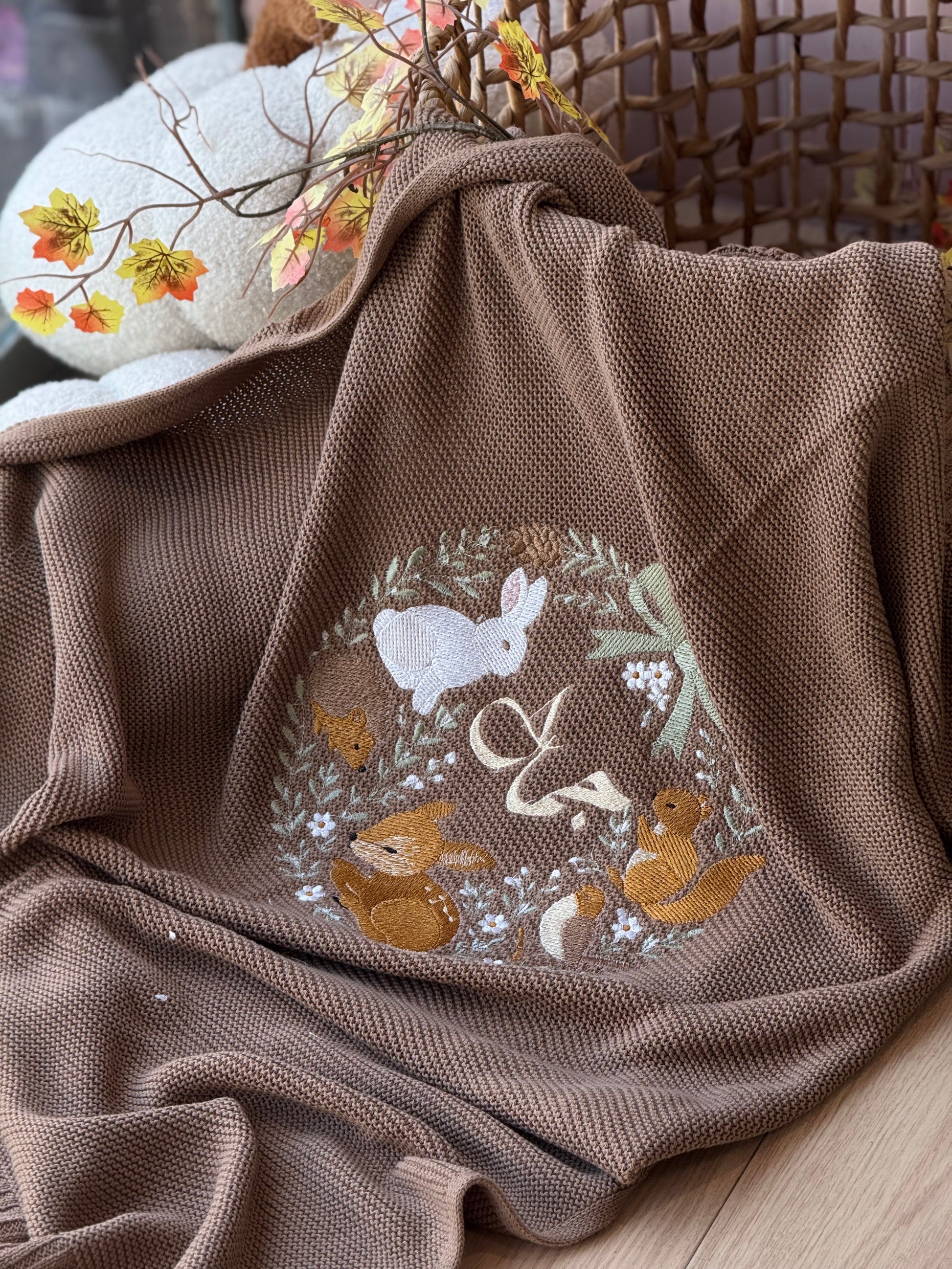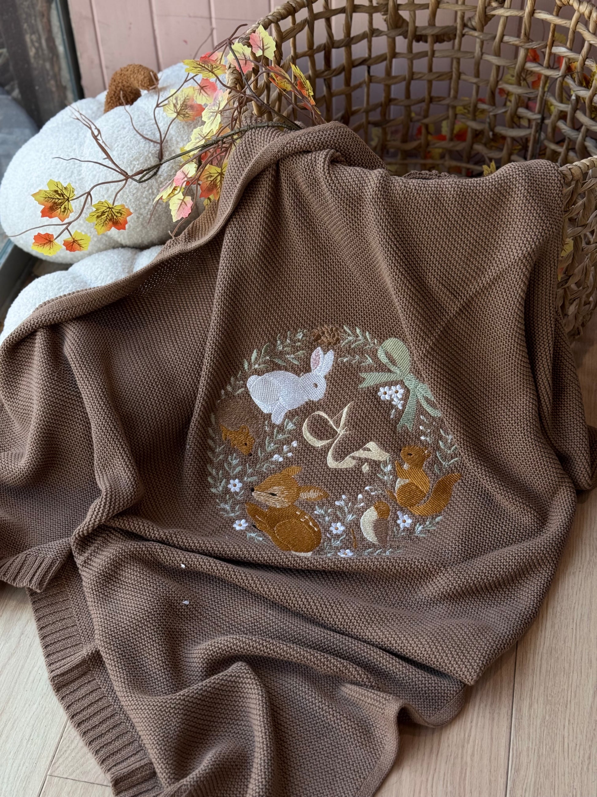 שמיכה סרוגה בתוספת רקמה חיות סתיו בצבעים חמים מתאימה לתקופת מעבר